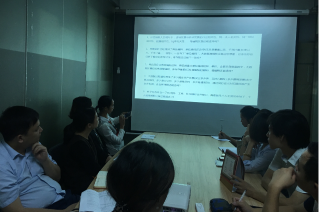 近日,由財務部主辦、包括銷售、商務等各有關部門積極參與的公司財稅知識培訓班在海圳生產基地舉辦。財務吳主管圍繞公司的財稅基礎知識和具體操作,進行了細致培訓和深入交流。